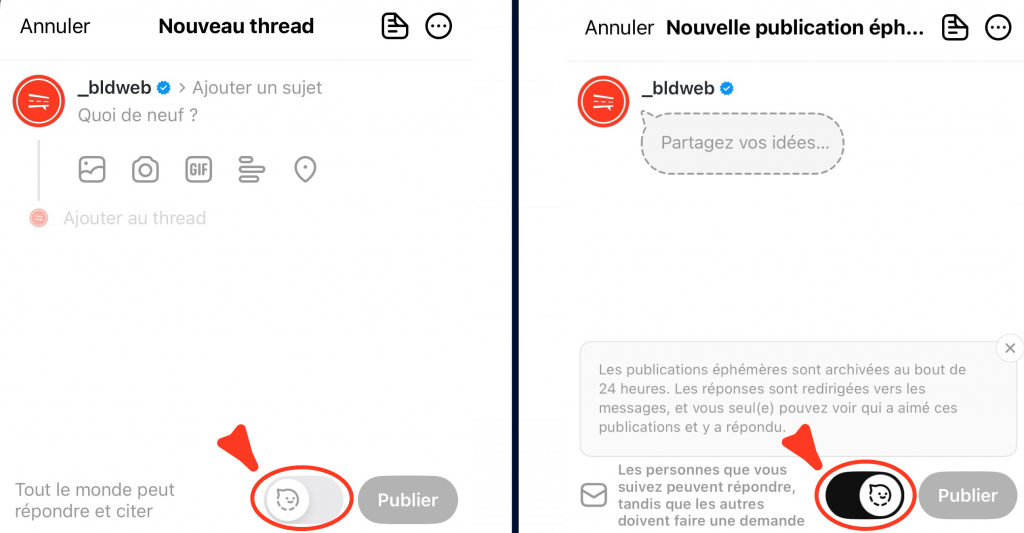 Lors d’une publication classique depuis le bouton « + », il faut simplement faire un switch pour changer de mode.